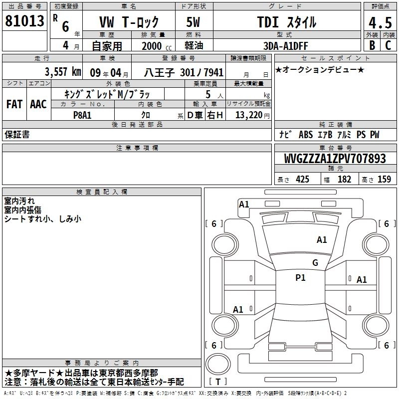 Статус выставлен на аукцион Лот 81013 Аукцион TAA Kantou Дата аукциона 12.03.2026