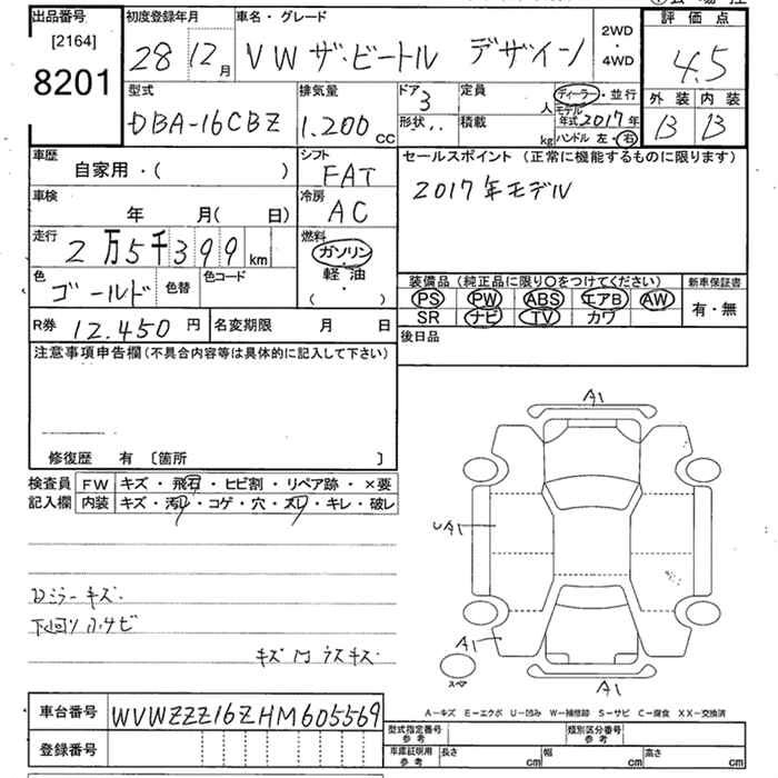 VOLKSWAGEN THE BEETLE 2016 г., лот № 8201