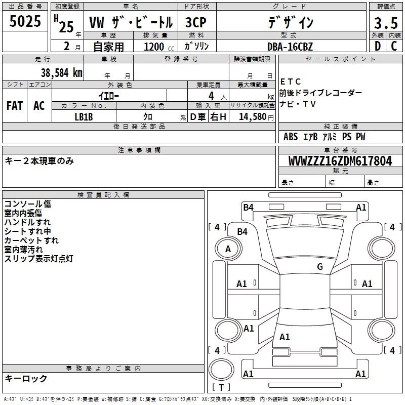 VOLKSWAGEN THE BEETLE 2013 г., лот № 5025