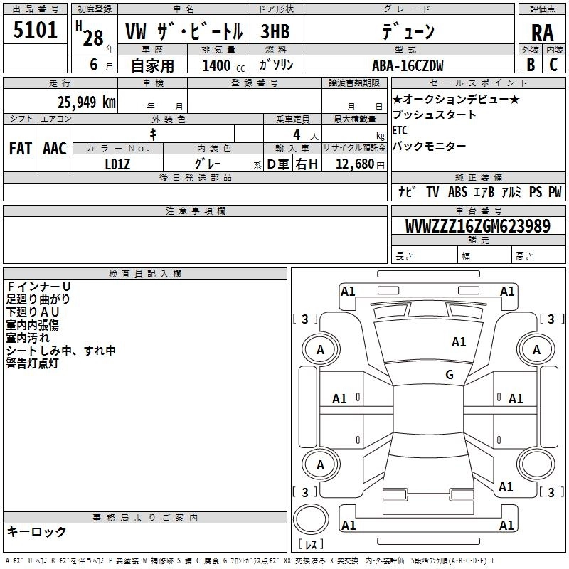 VOLKSWAGEN THE BEETLE 2016 г., лот № 5101