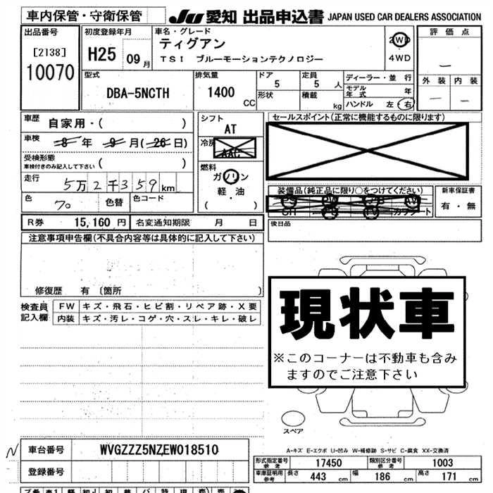 VOLKSWAGEN TIGUAN 2013 г., лот № 10070