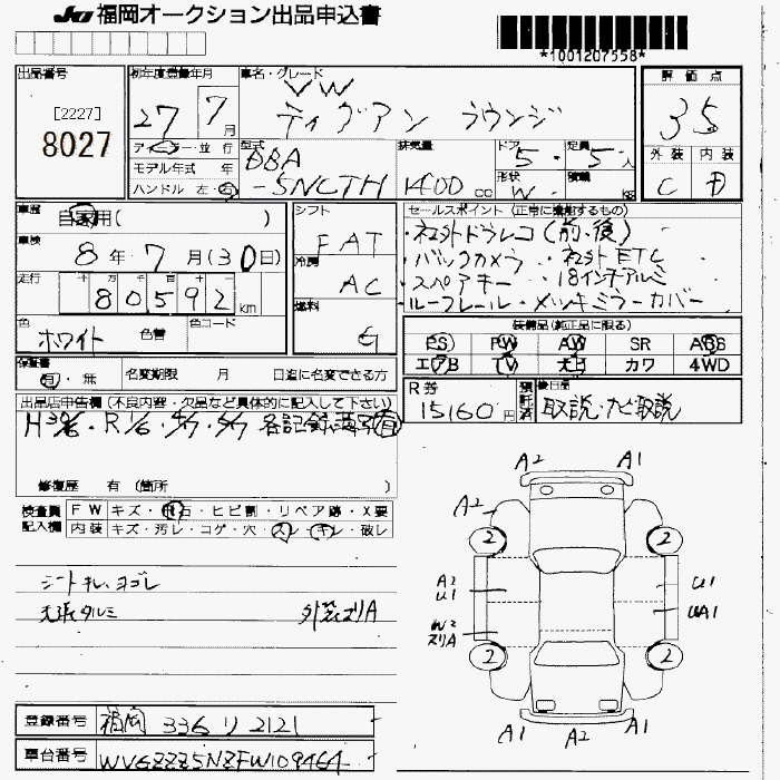 VOLKSWAGEN TIGUAN 2015 г., лот № 8027