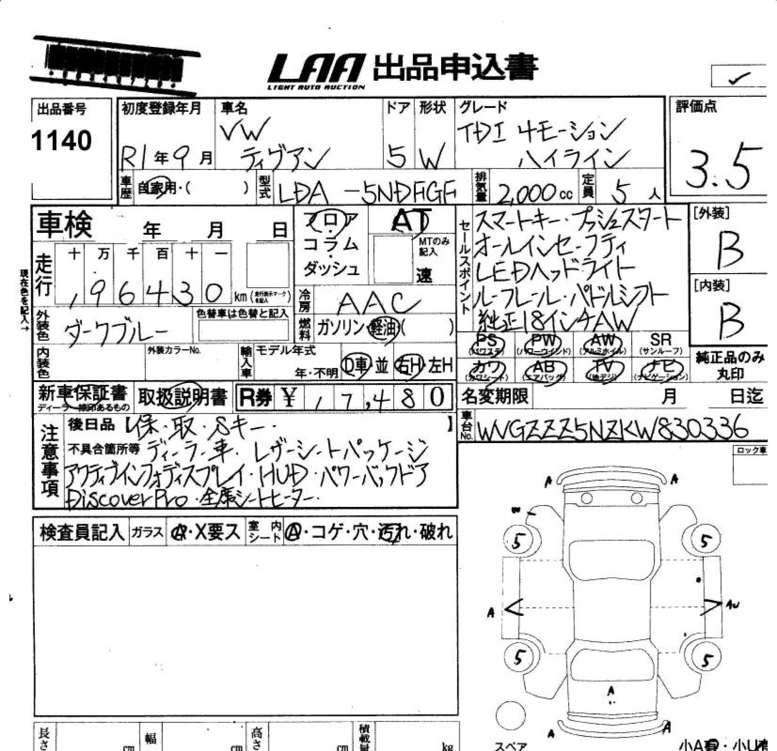 VOLKSWAGEN TIGUAN 2019 г., лот № 1140
