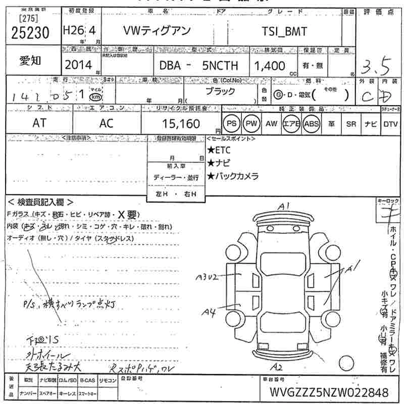 VOLKSWAGEN TIGUAN 2014 г., лот № 25230
