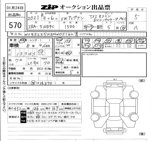 VOLKSWAGEN TIGUAN 2021 г., лот № 570