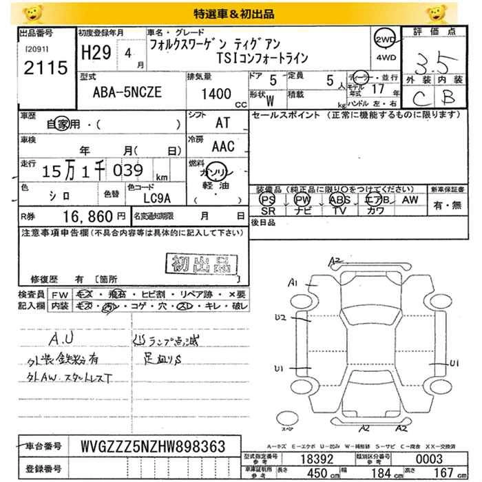 VOLKSWAGEN TIGUAN 2017 г., лот № 2115