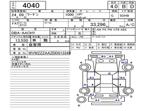 VOLKSWAGEN UP! 2012 г., лот № 4040
