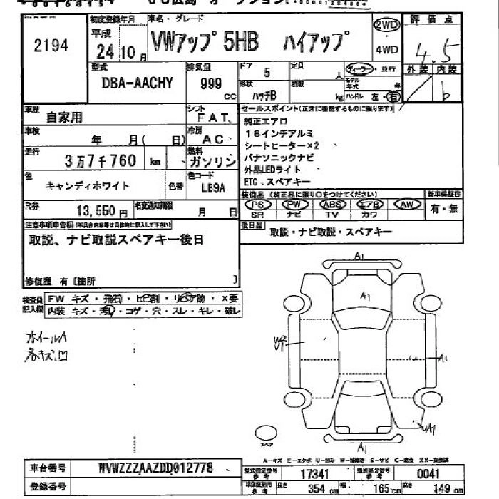 VOLKSWAGEN UP! 2012 г., лот № 2194