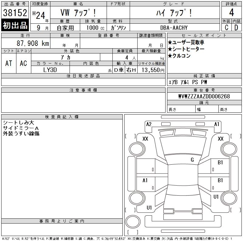 VOLKSWAGEN UP! 2012 г., лот № 38152