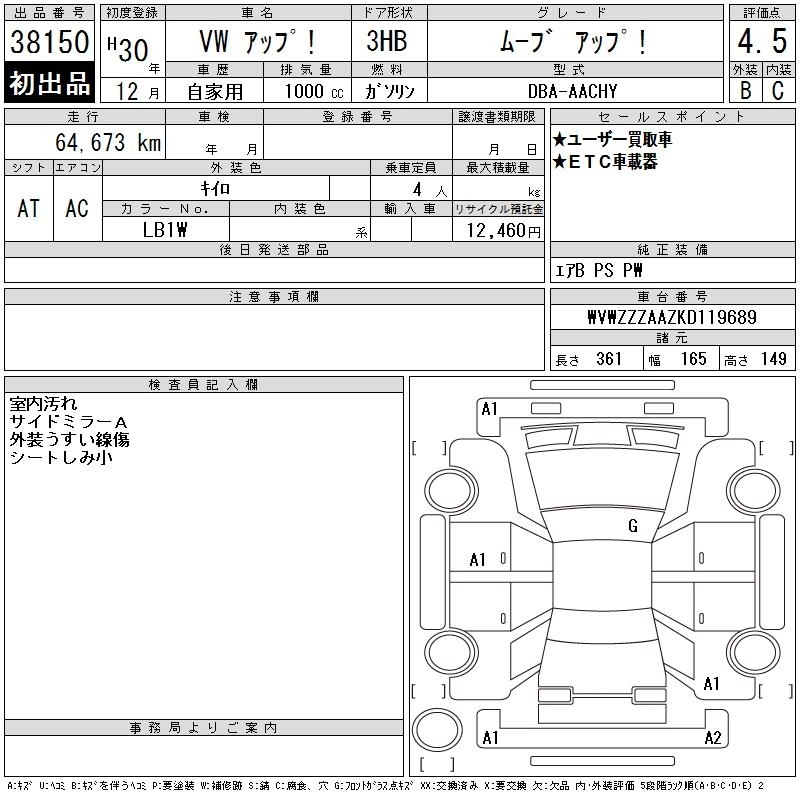 VOLKSWAGEN UP! 2018 г., лот № 38150