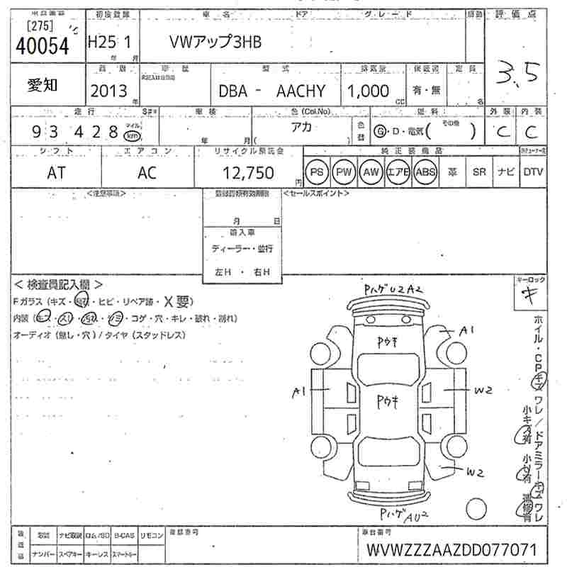 VOLKSWAGEN UP! 2013 г., лот № 40054