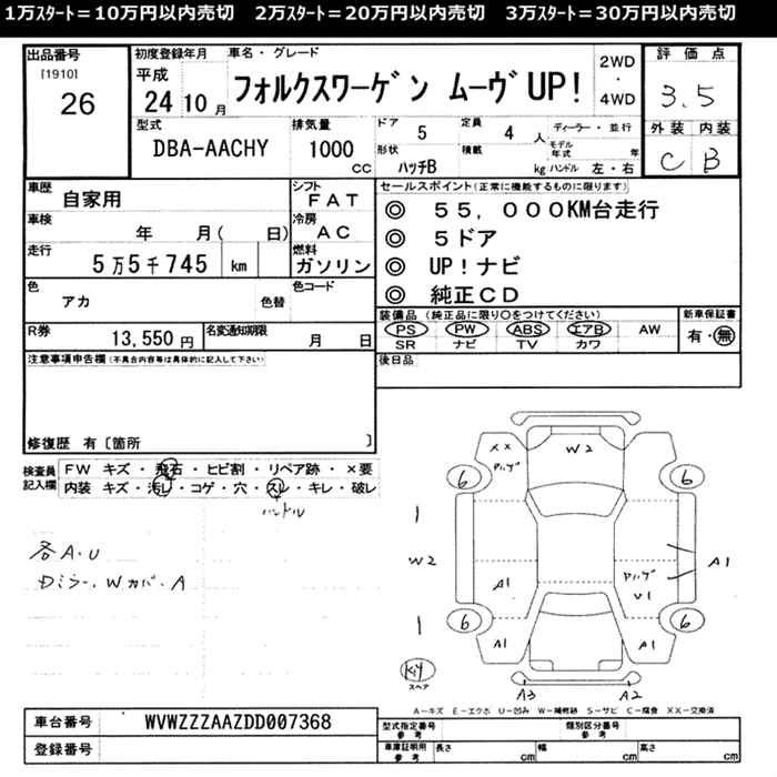 VOLKSWAGEN UP! 2012 г., лот № 26