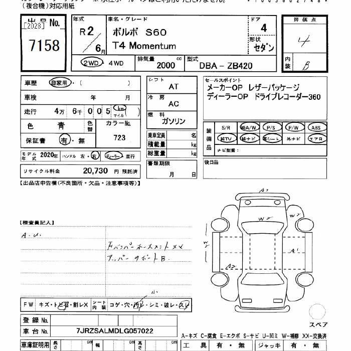 VOLVO S60 2020 г., лот № 7158