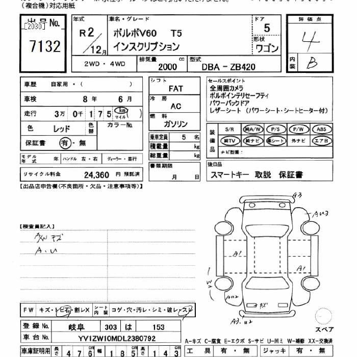 Год выпуска2020 Пробег 30 000 км КузовZB420 КомплектацияV60 T5 INSCRIPTION