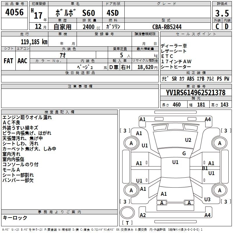 VOLVO S60 2005 г., лот № 4056