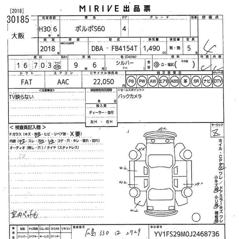 VOLVO S60 2018 г., лот № 30185