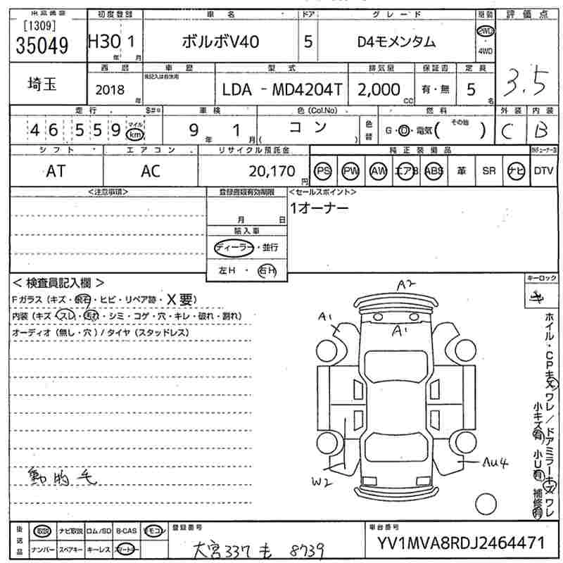 VOLVO V40 2018 г., лот № 35049