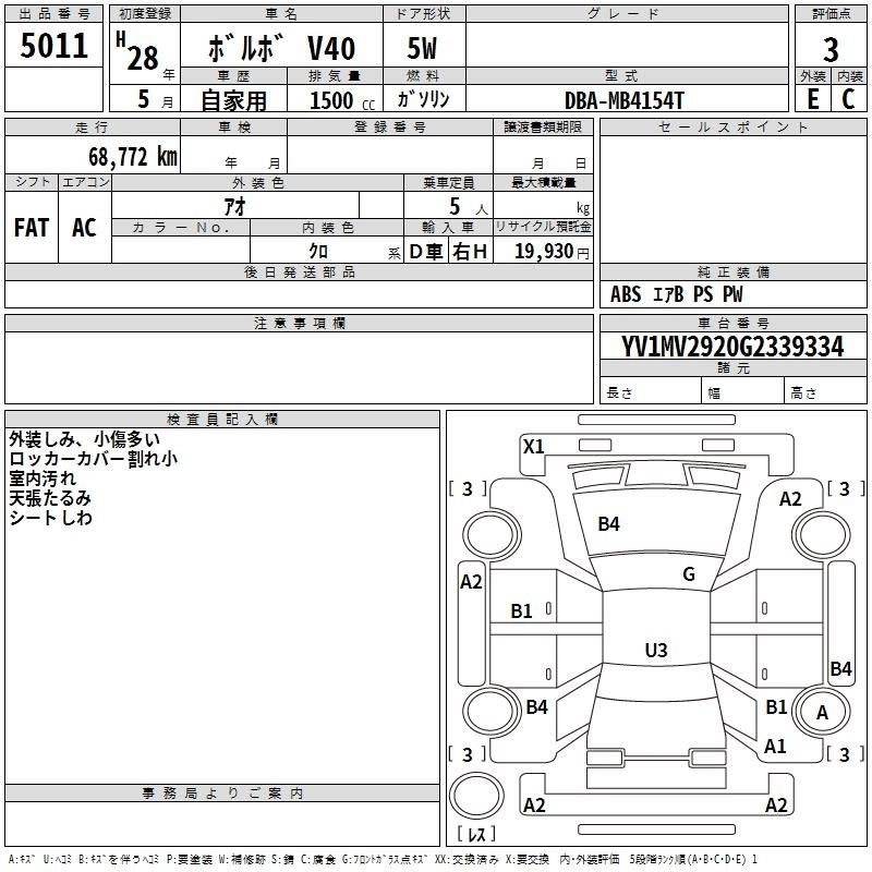 VOLVO V40 2016 г., лот № 5011