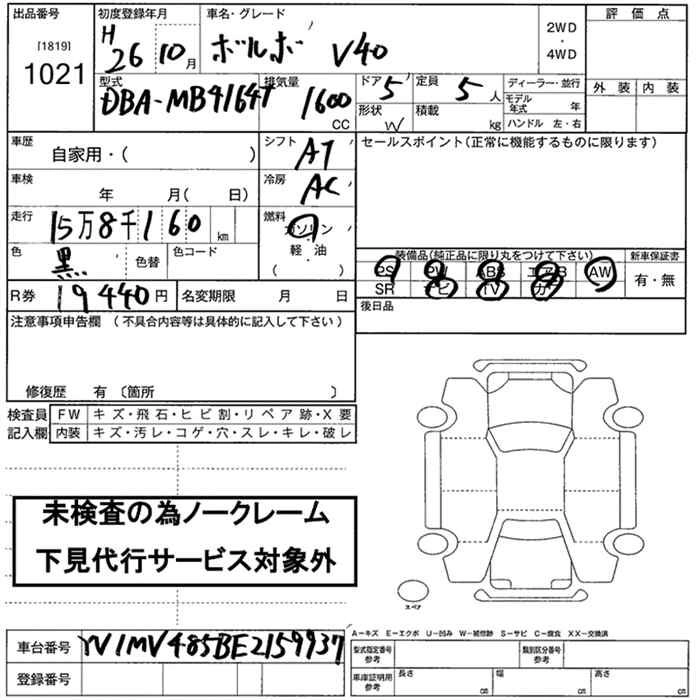 VOLVO V40 2014 г., лот № 1021