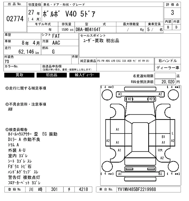 VOLVO V40 2015 г., лот № 2774