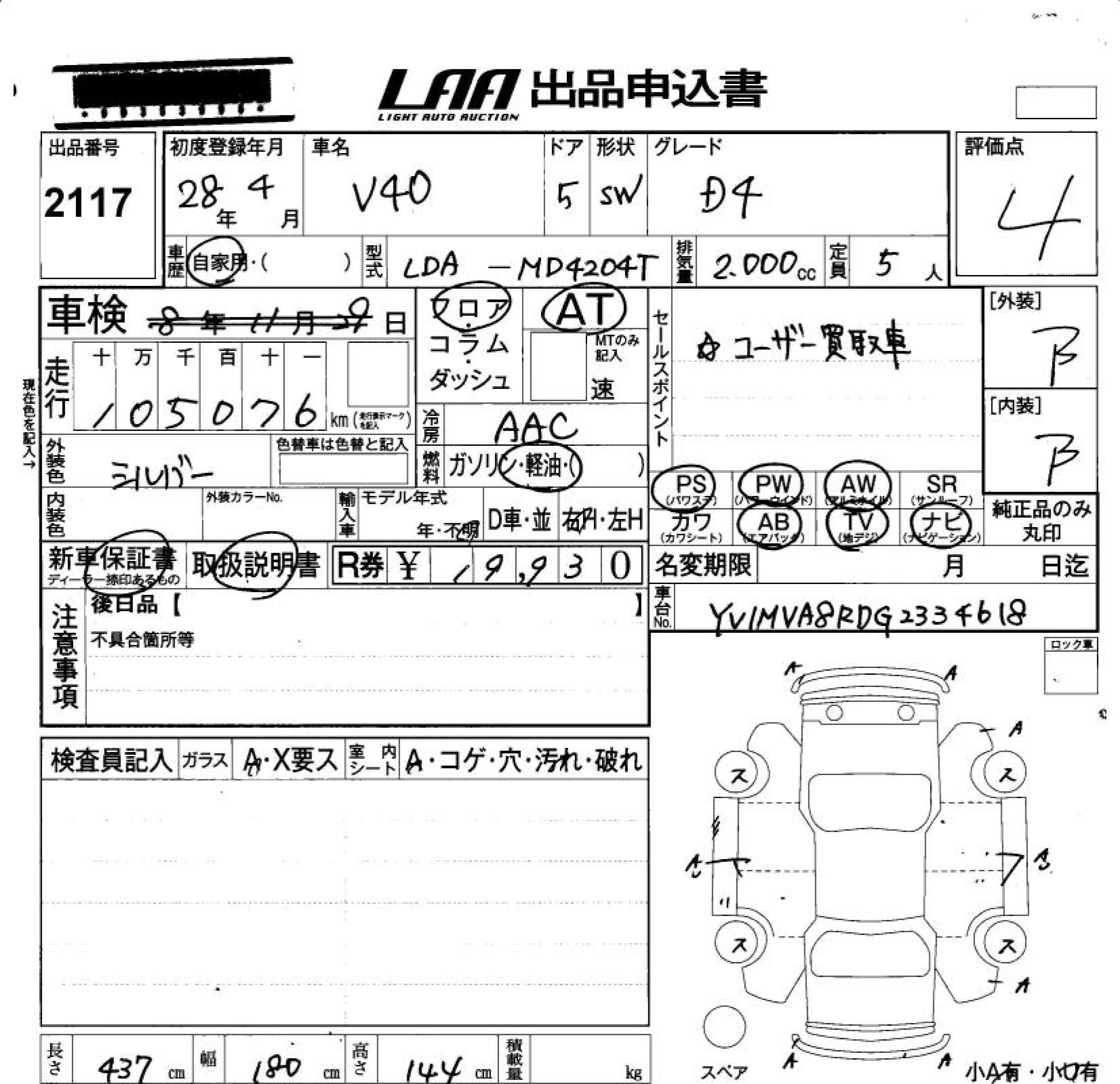 VOLVO V40 2016 г., лот № 2117