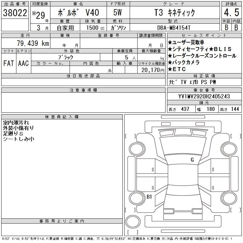 VOLVO V40 2017 г., лот № 38022