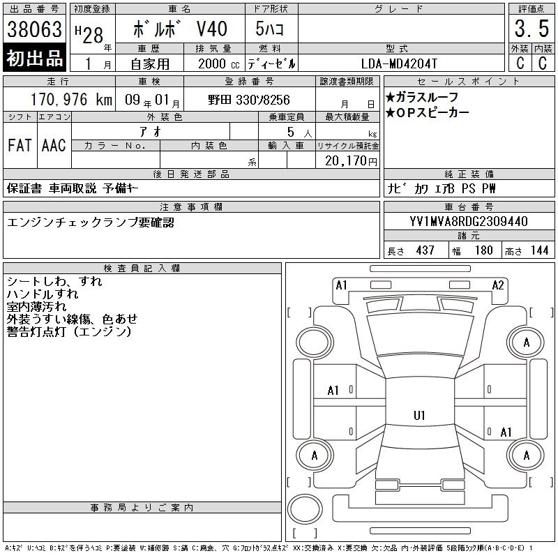 VOLVO V40 2016 г., лот № 38063