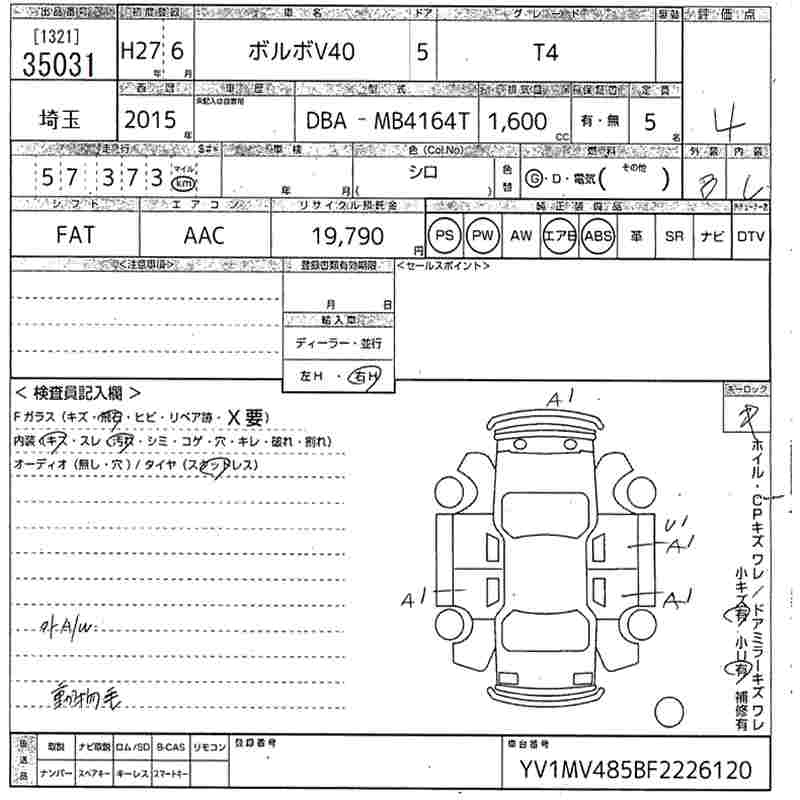 VOLVO V40 2015 г., лот № 35031