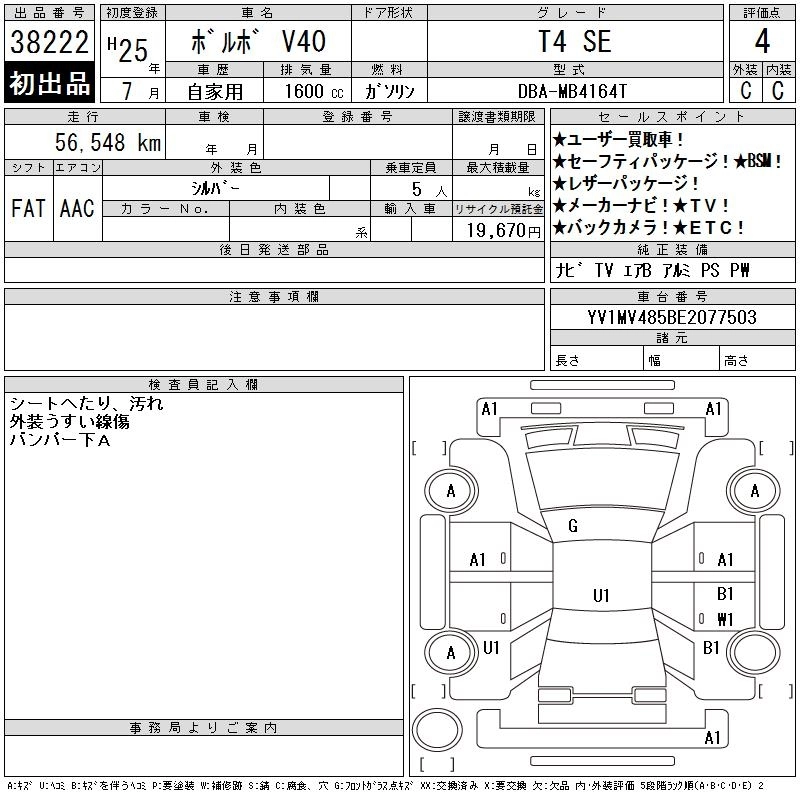 VOLVO V40 2013 г., лот № 38222