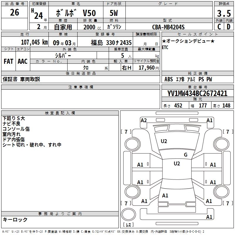 VOLVO V50 2012 г., лот № 26