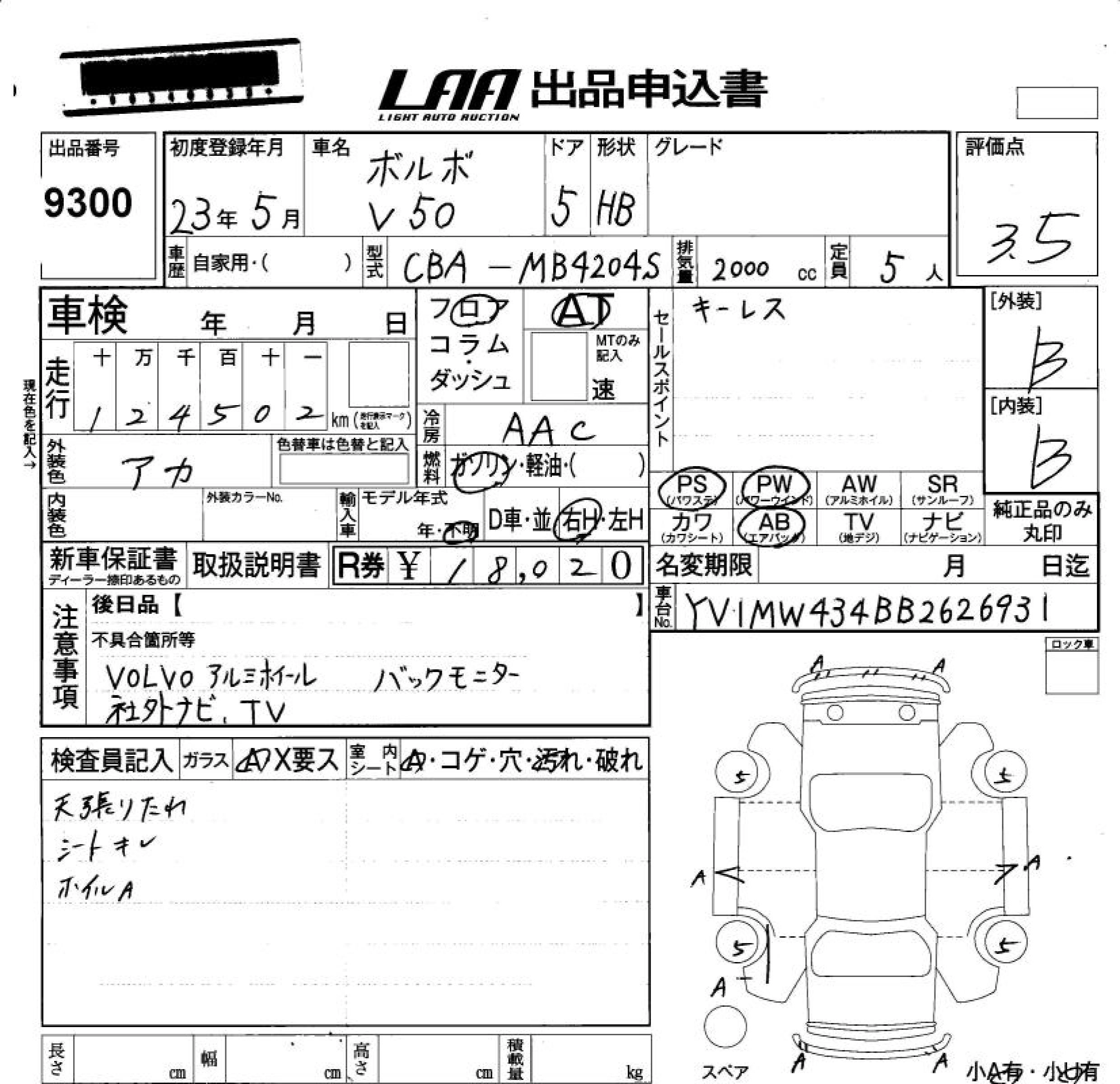 Статус не продан Лот 9300 Аукцион LAA Okayama Дата аукциона 23.01.2026