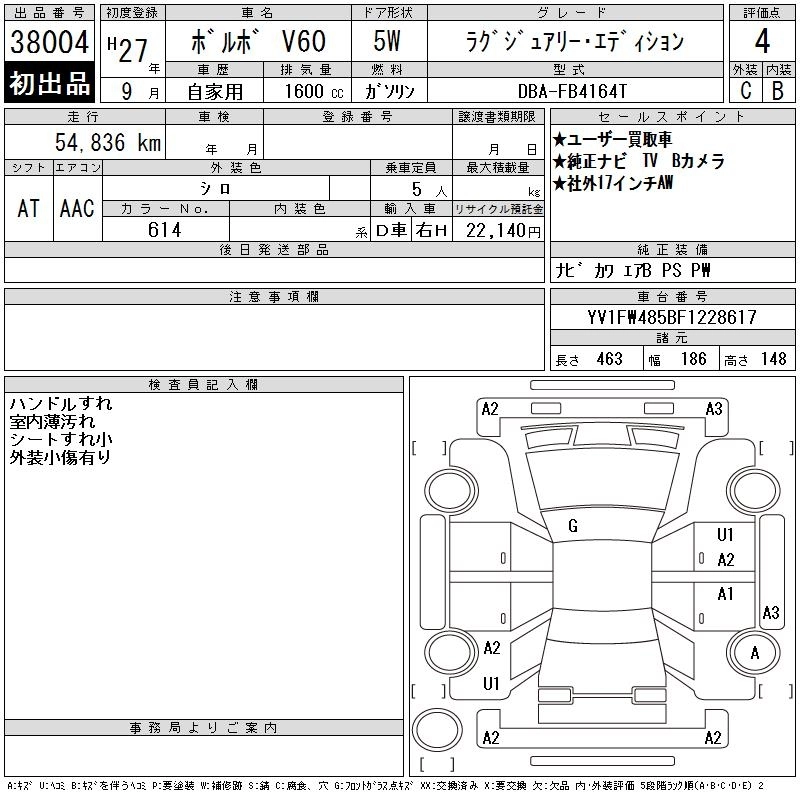 VOLVO V60 2015 г., лот № 38004