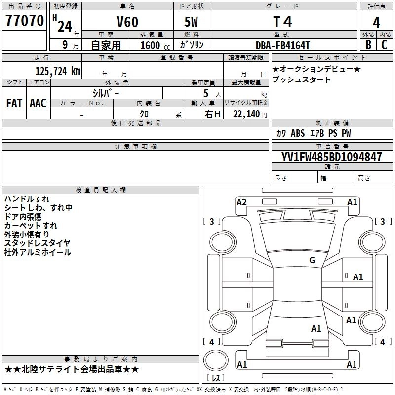 VOLVO V60 2012 г., лот № 77070