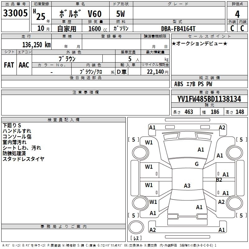 VOLVO V60 2013 г., лот № 33005