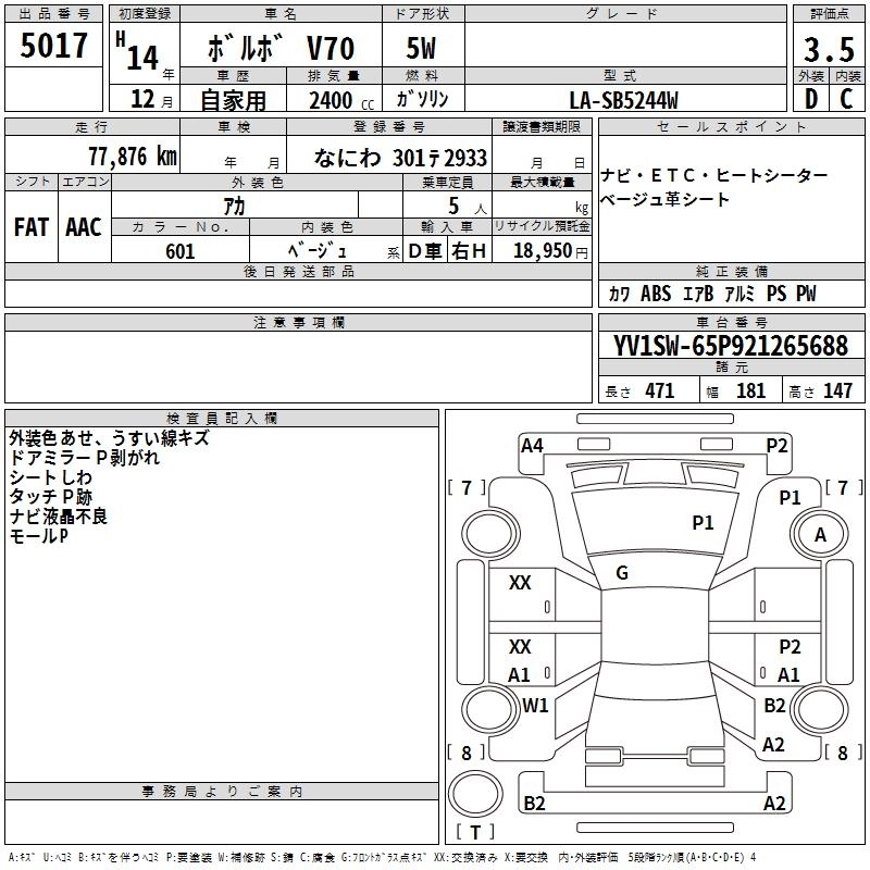 VOLVO V70 2002 г., лот № 5017