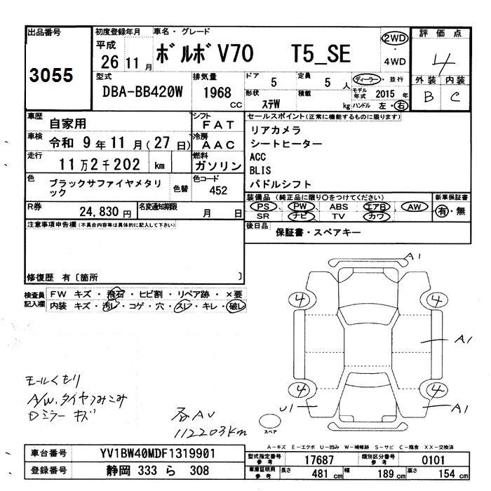 VOLVO V70 2014 г., лот № 3055