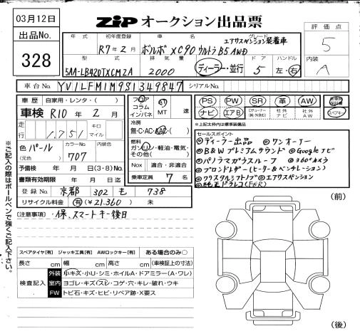 2 000 км КузовLB420TXCM2A КомплектацияXC90 ULTRA B5 AWD AIR SUSPENSION SOU TEA K CAR