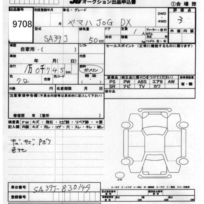 Статус выставлен на аукцион Лот 9708 Аукцион JU Chiba Дата аукциона 13.03.2026