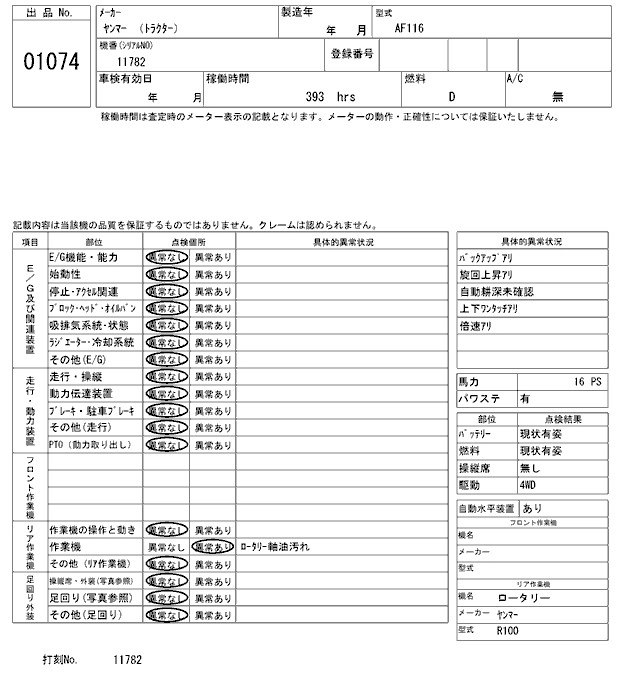 Статус продан Лот 1074 Аукцион ARAI Kenki Дата аукциона 27.01.2026