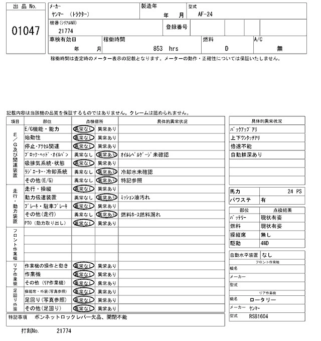 Статус продан Лот 1047 Аукцион ARAI Kenki Дата аукциона 27.01.2026