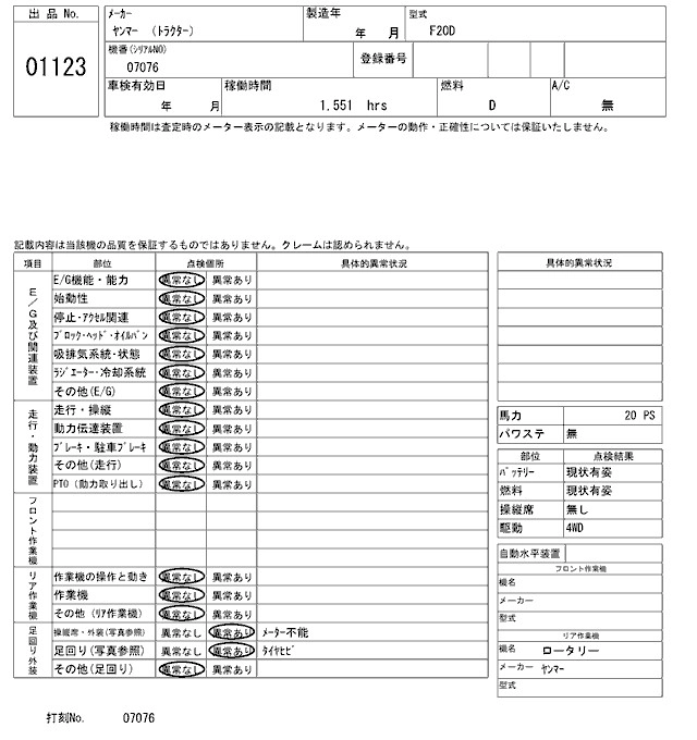 Статус продан Лот 1123 Аукцион ARAI Kenki Дата аукциона 27.01.2026