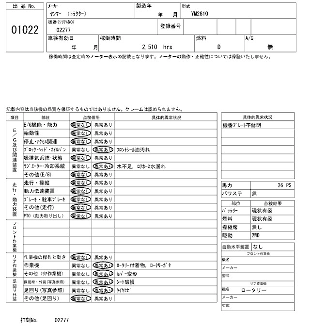 Статус продан Лот 1022 Аукцион ARAI Kenki Дата аукциона 27.01.2026