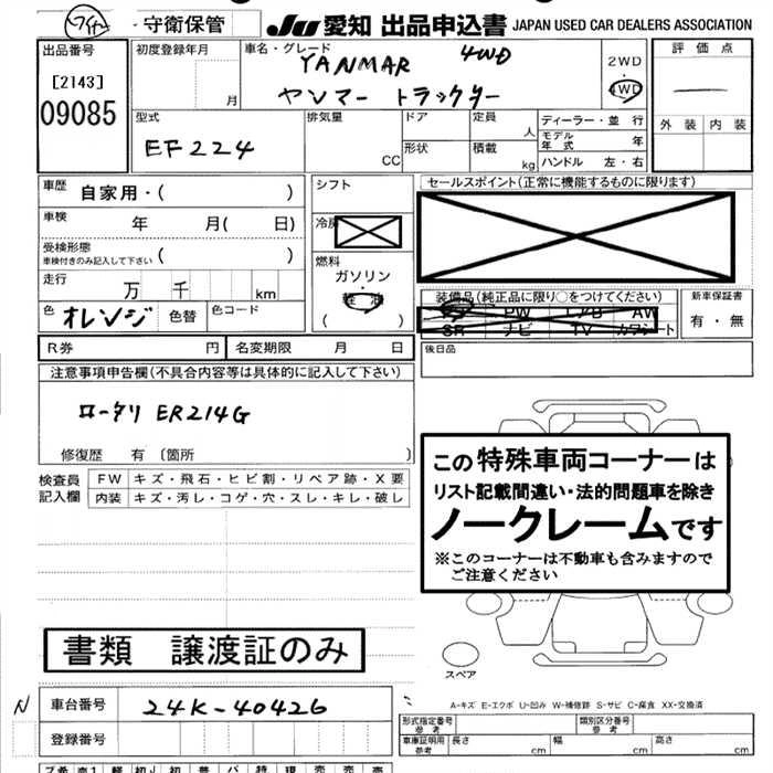 Статус выставлен на аукцион Лот 9085 Аукцион JU Aichi Дата аукциона 29.01.2026