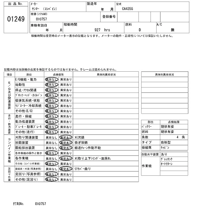 Статус выставлен на аукцион Лот 1249 Аукцион ARAI Kenki Дата аукциона 10.03.2026