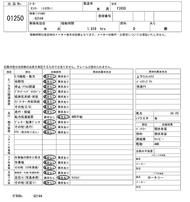 Статус продан Лот 1250 Аукцион ARAI Kenki Дата аукциона 24.03.2026