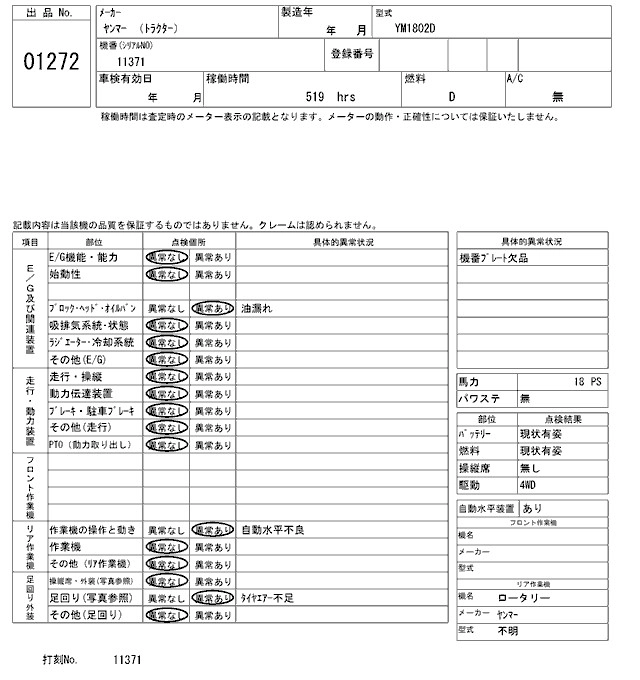 Статус не продан Лот 1272 Аукцион ARAI Kenki Дата аукциона 24.03.2026