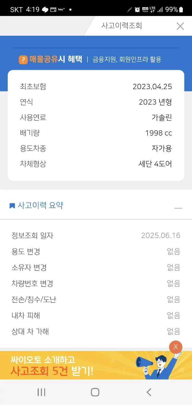 История страховых случаев есть