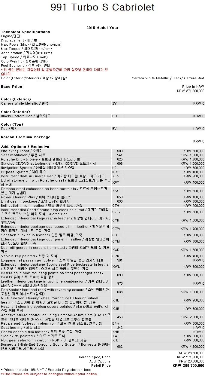 Комплектация Turbo S Cabriolet 991