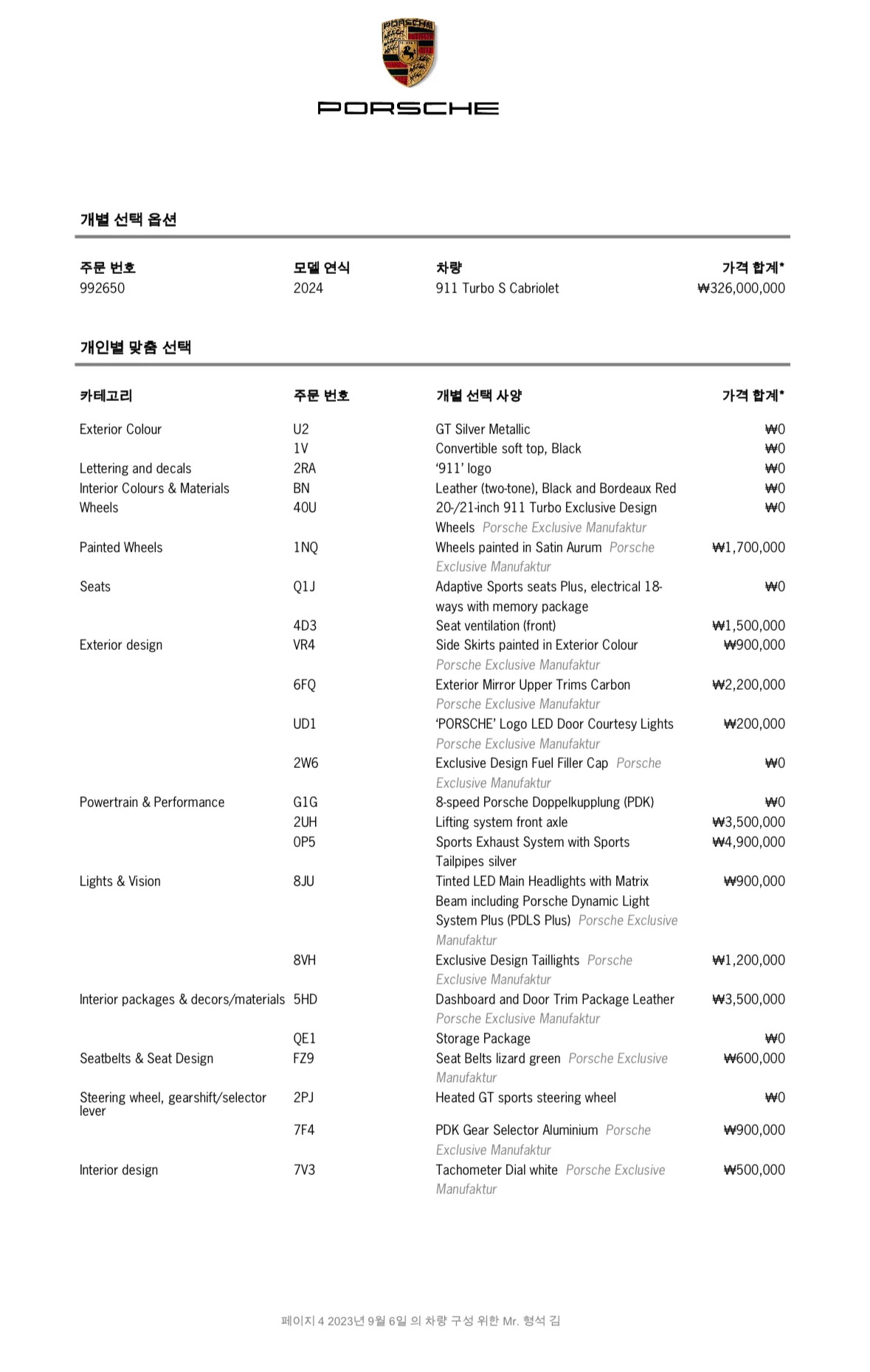 Комплектация Turbo S Cabriolet 991
