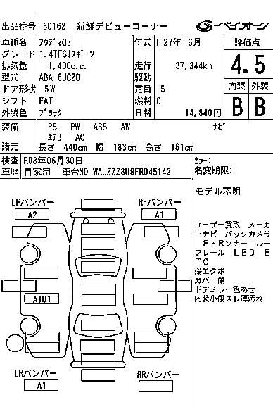 Аукцион BAYAUC Дата аукциона 28.01.2026 Год2015 Тип кузоваДжип/SUV Номер кузова8UCZD Объем1400 сс Трансмиссия FAT Привод Автомат Пробег 38 000 км Цветчерный Оценка4.5